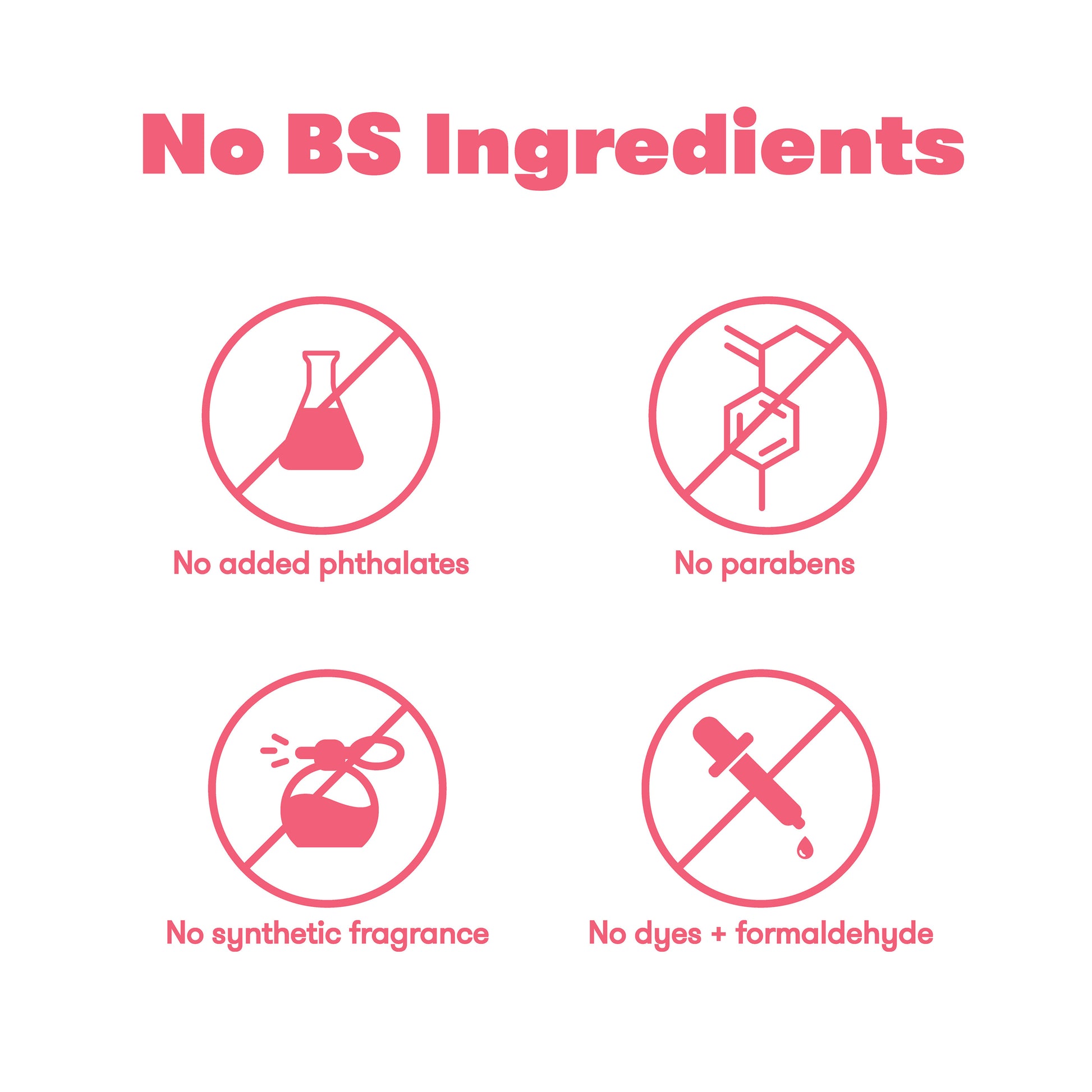 - • NO BS: Made without phthalates, sulfates, synthetic fragrances, dyes or formaldehyde
